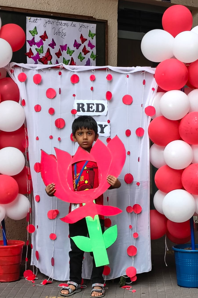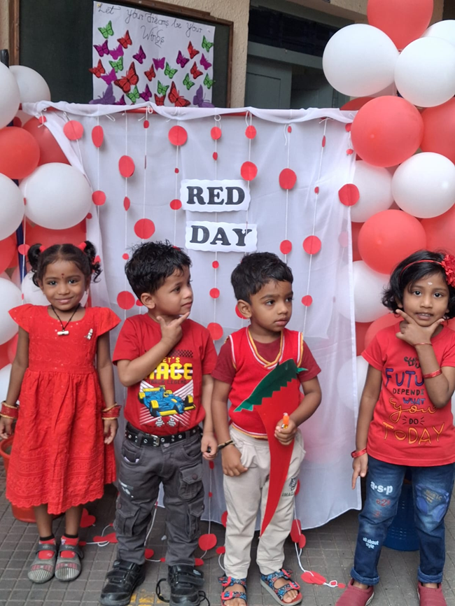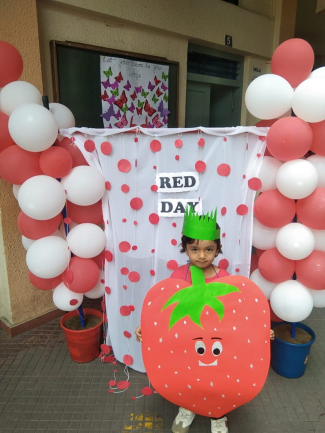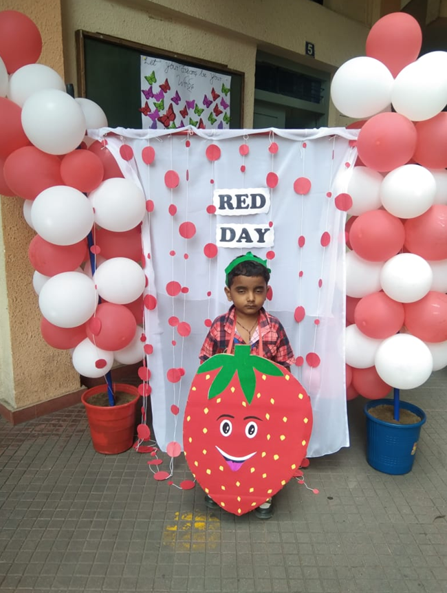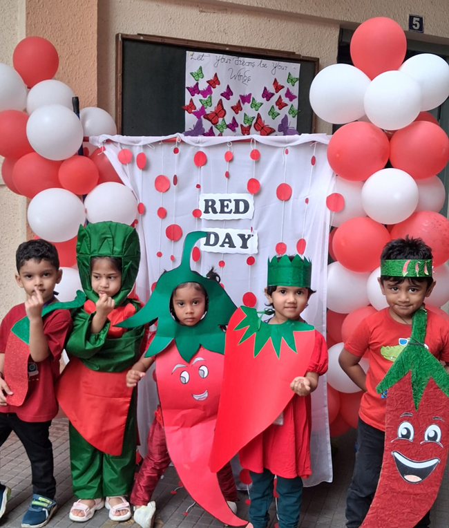 Colour day is celebrated not just to make a colourful ambience around our kids but also to highlight the significance of the colours. The lilchamps of DSIS celebrated Red day on 26th June. Both students and Teachers were all dressed in red and with all their enthusiasm the teachers decorated the school boards and classrooms in red. Meaningful charts were put up. Activities like ladybug craft, paper craft cherries and thumbprint strawberry were performed by the students and the teachers of the kindergarten team. It was a bright colourful and happy day in the school premises.