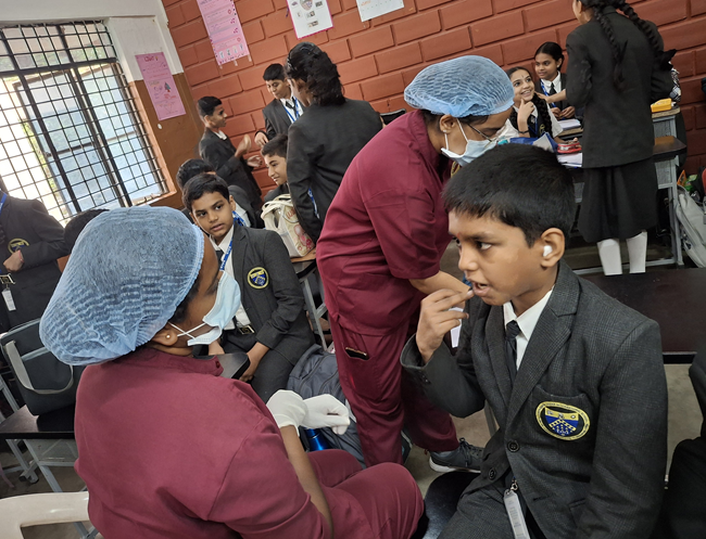 DSIS organized Dental checkup as a part of general health checkup for students. Students were given a few oral tips to maintain their mouth and teeth hygiene. Also suggested for few students to consult the doctors for further treatment for their tooth care.