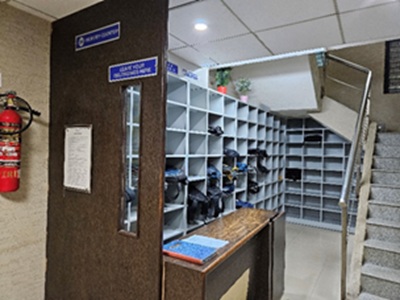 To enter the library smart cards (ID card) are to be flashed on the access control machine for punch in and punch out. Users can deposit their belongings at the Property Counter, which is under CCTV surveillance.